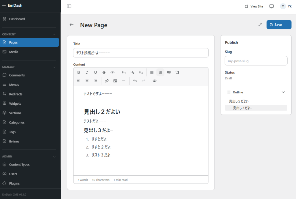 ということで、Wordpressの使用感とあまり変わらず技術スタックは最新のものを使ったCMSを作った、ってことらしいです。